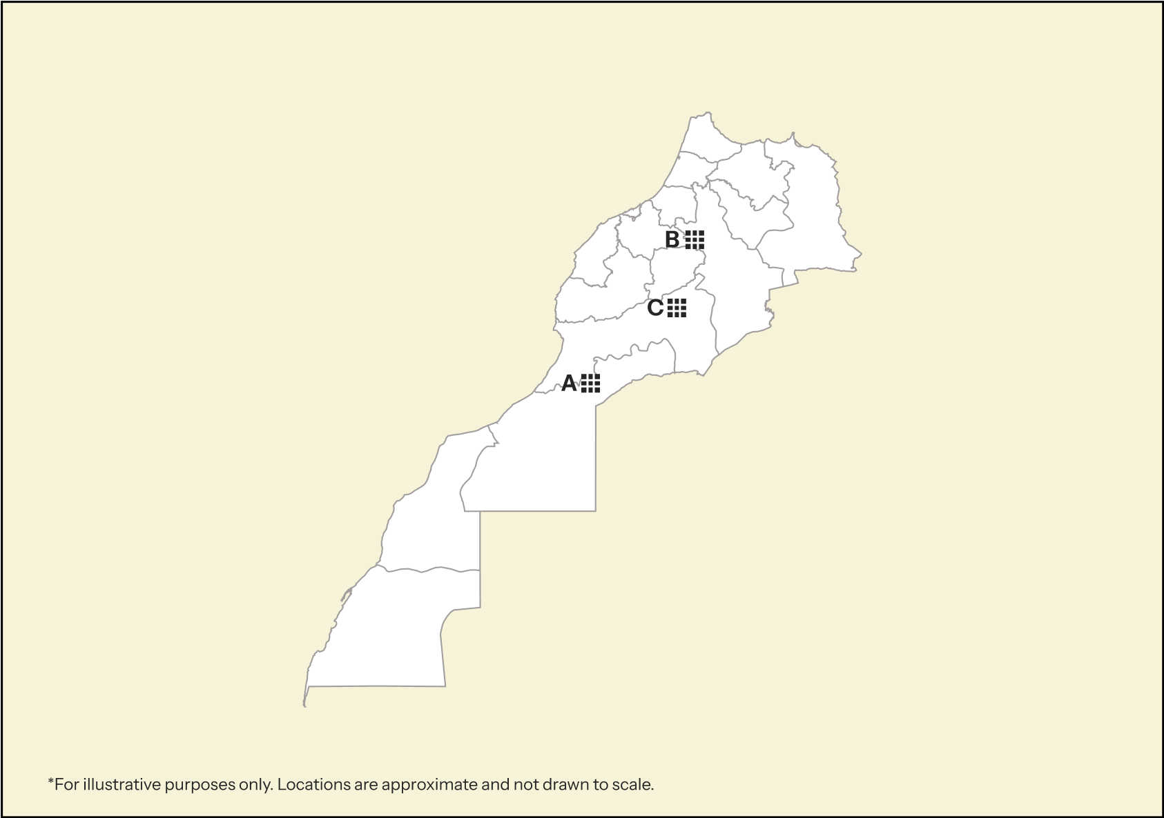 Souss-Massa(A), Fez-Meknes(B), Béni Mellal-Khénifra(C)