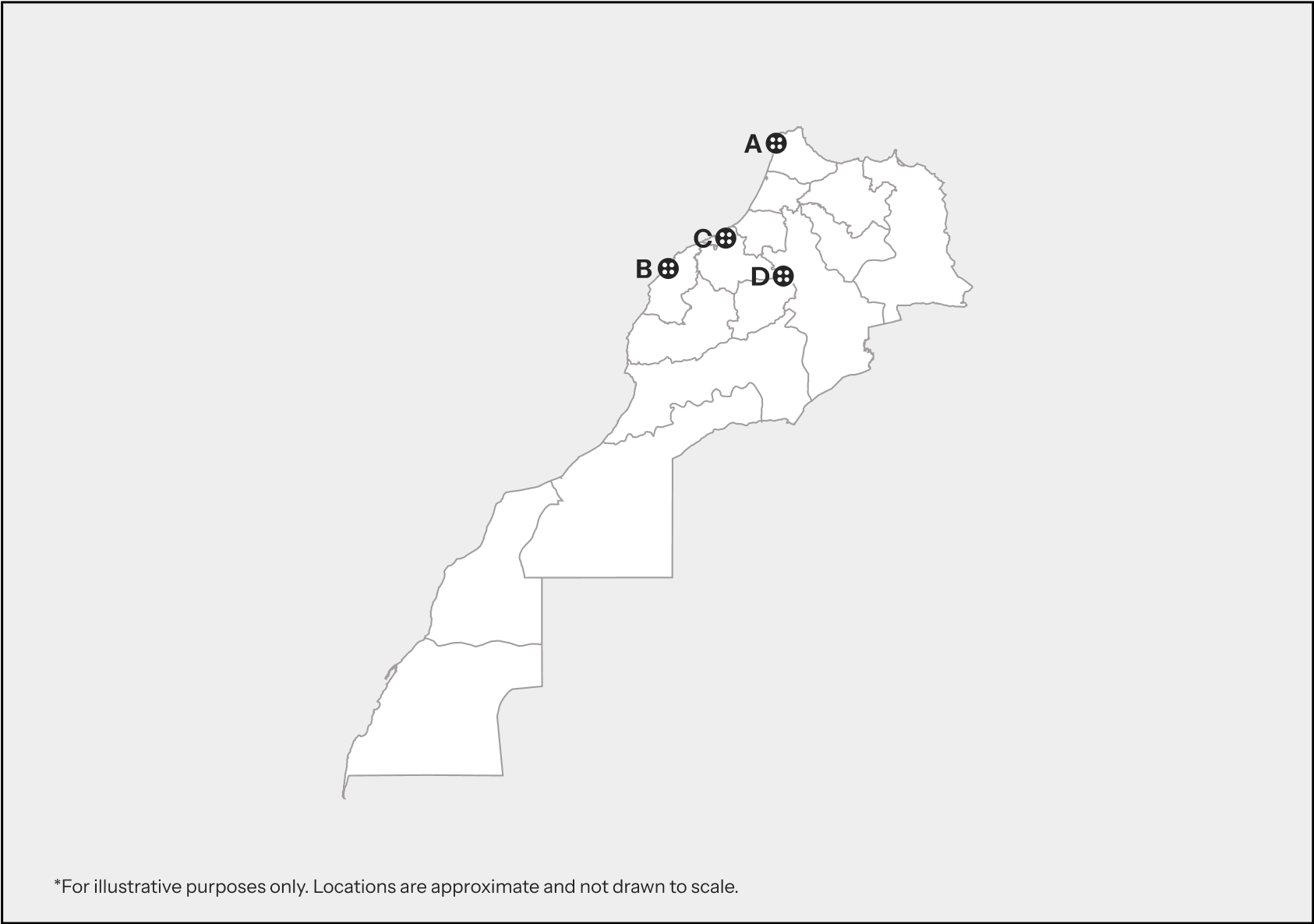 Tangier(A), Casablanca(B), Rabat-Salé(C) and Fez Meknes(D)