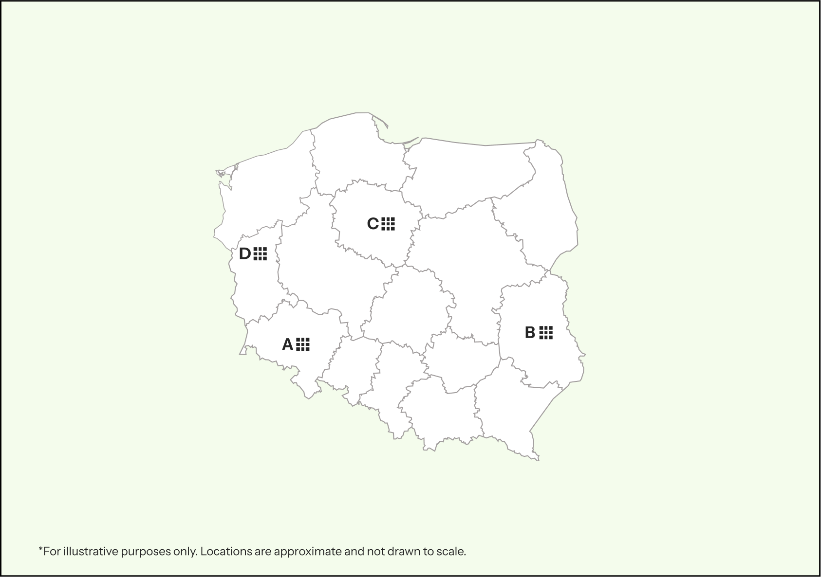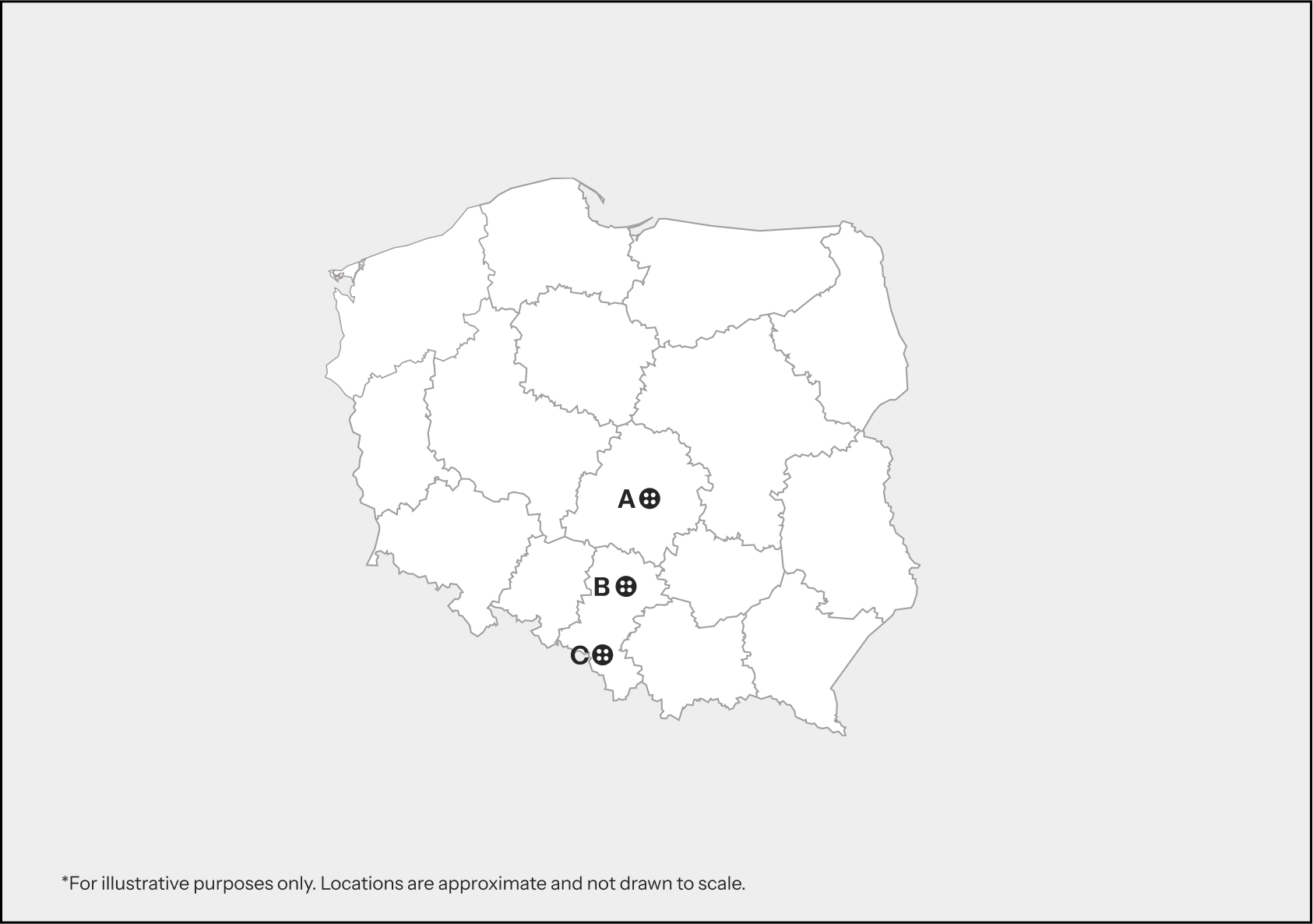 Łódź region(A), Radom and parts of Upper Silesia(B), Bielsko-Biała / Rybnik area(C)