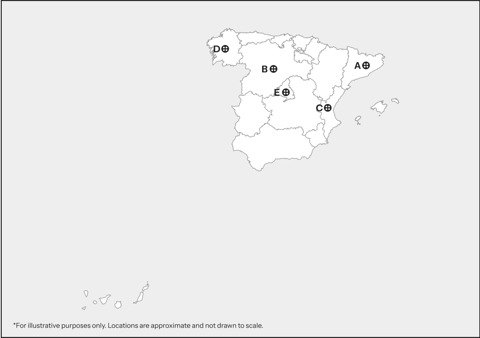 Catalonia(A), Castile-Leon(B), the Valencian Community(C), Galicia and Madrid(D)