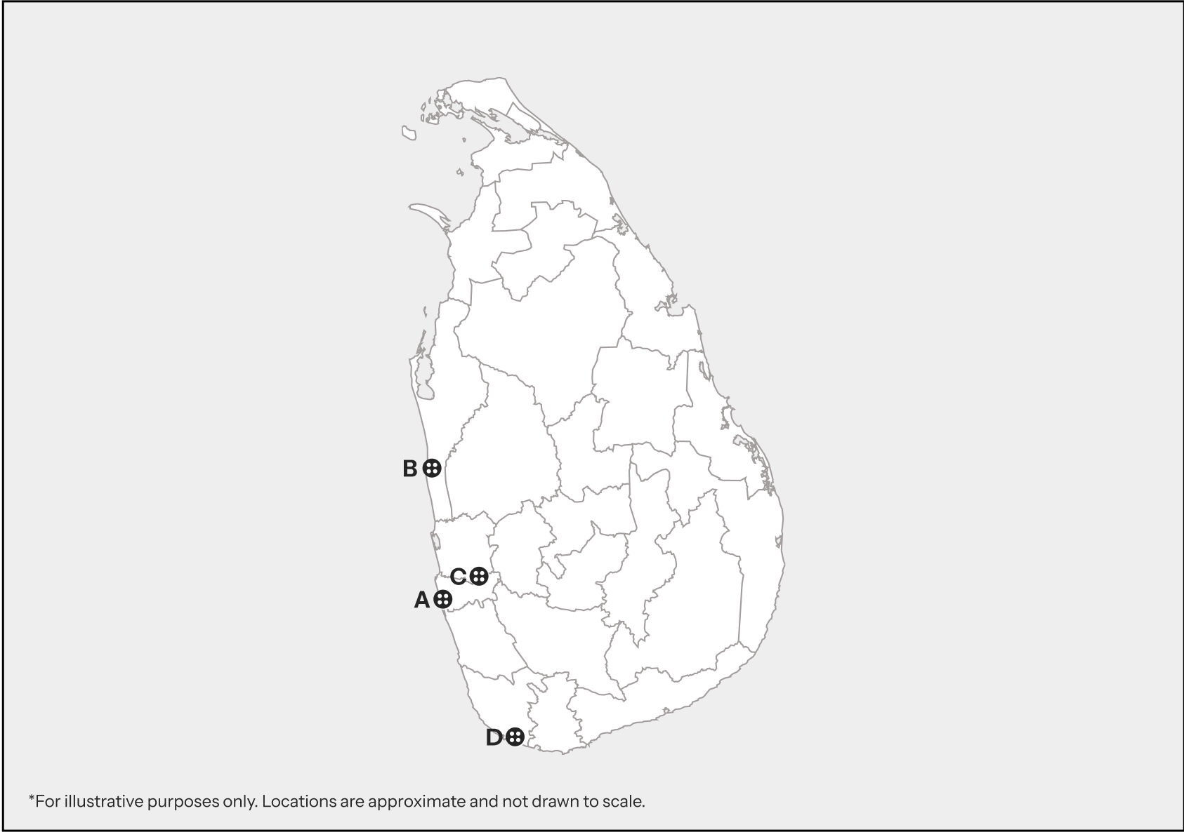 Colombo(A), Katunayake(B), Biyagama(C), and Koggala(D)